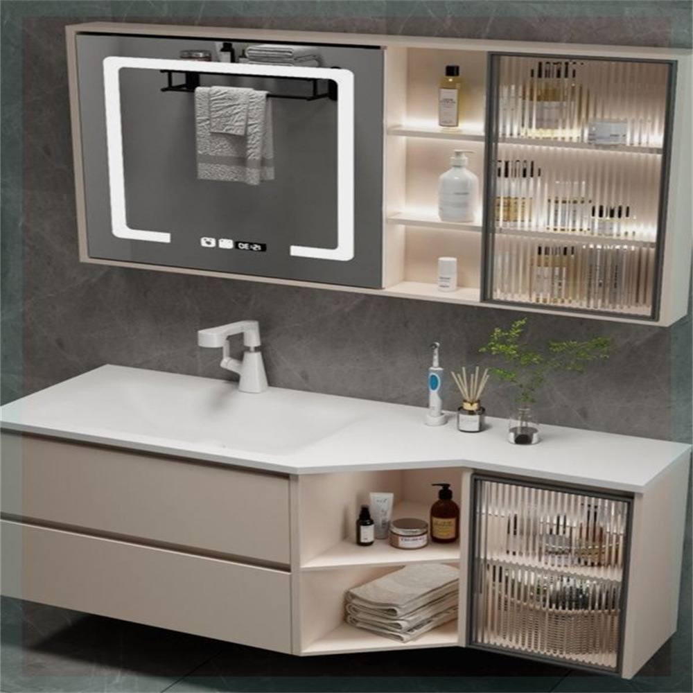 ホットベンドロックボードバスルーム一体型キャビネット洗面台カットコーナー特殊形状組み合わせ家庭用洗面台バスルームキャビネット洗面台