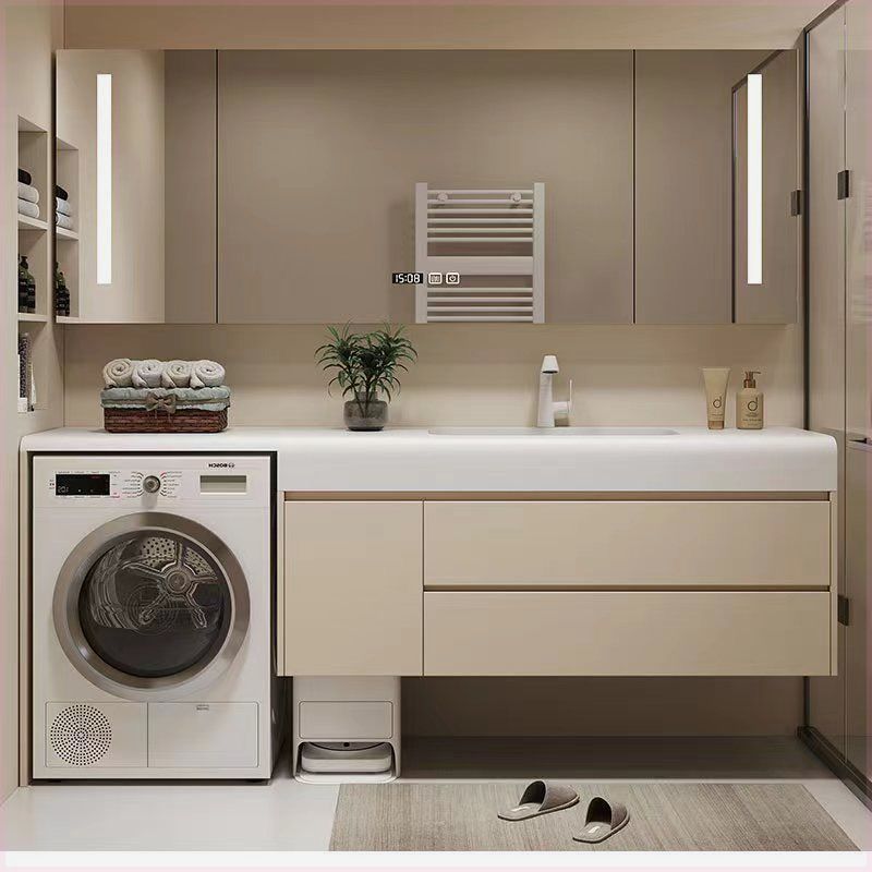 クリーム系洗面器キャビネットセット洗濯機キャビネット可丽耐一体盆岩板陶磁器シームレス盆洗面台盆