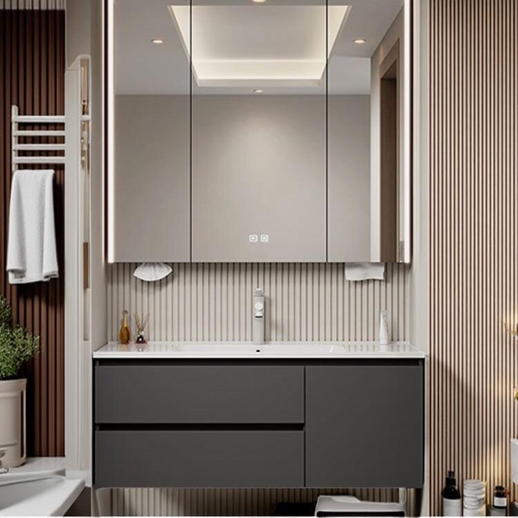 ホームロックボードセラミックシームレス一体型洗面器バスルーム二層ロックボードバスルームキャビネット洗面台キャビネット組み合わせグレー