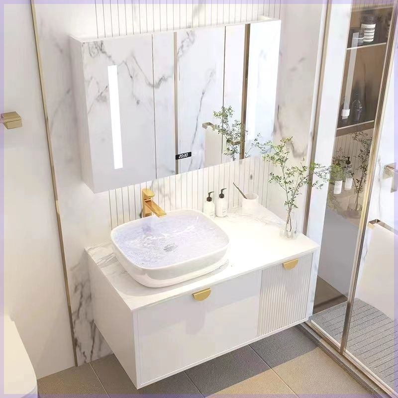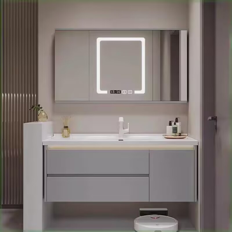 モダンでシンプルなバスルームスレート一体型ハニカムアルミニウムバスルームキャビネット掃除ロボットインテリジェントストレージ洗面キャビネット