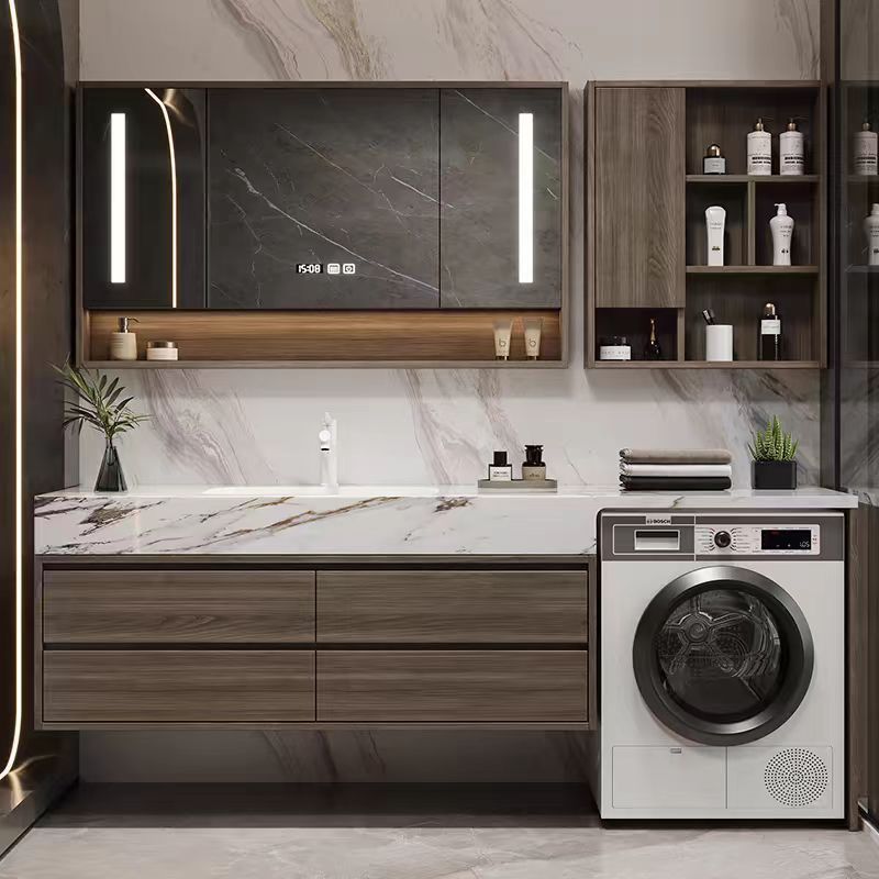 無垢材多層岩板シームレスセラミック洗面台スマート浴室キャビネット組み合わせ、洗濯キャビネットメーカー直送