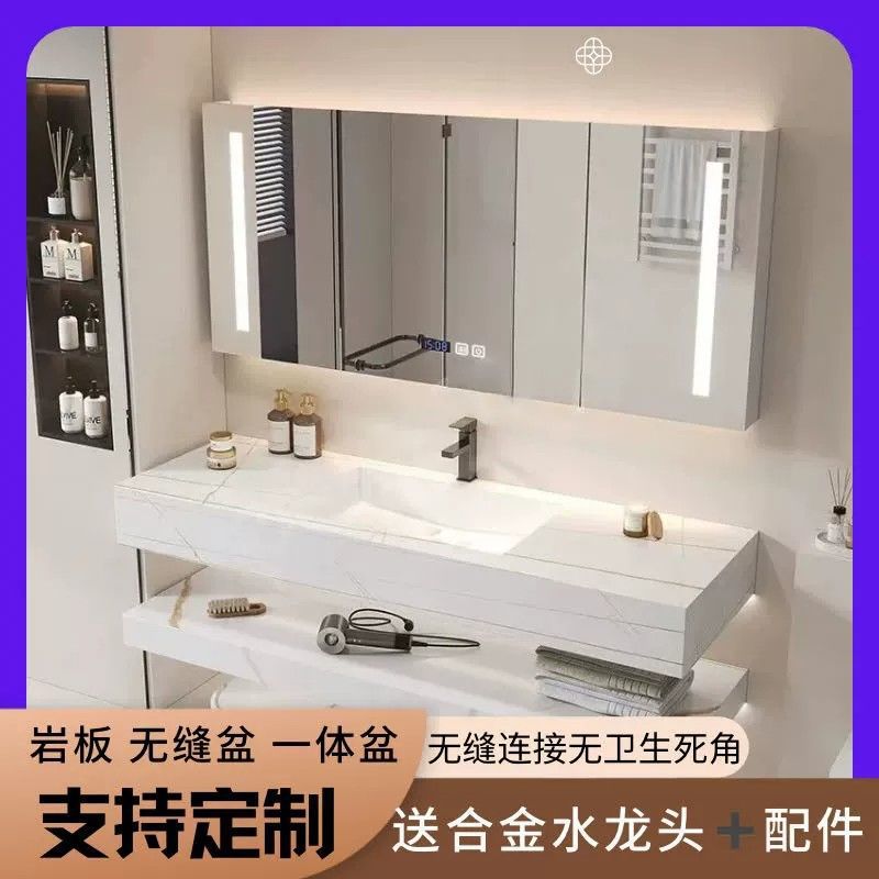 軽豪華岩板シームレス浴室キャビネット化粧台一体トイレ洗面台化粧台セットシンプル