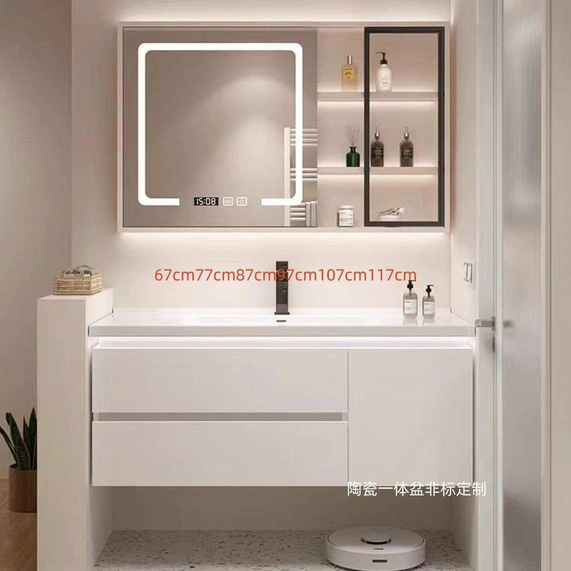 ロボット掃除機 76/86/96/106/116 セラミック一体型洗面器ハニカムアルミニウムバスルームキャビネットトップミラーキャビネット