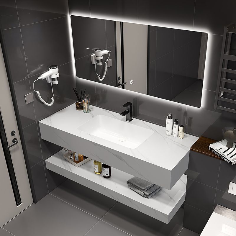 二層スレートセラミックシームレス一体型洗面台バスルームキャビネット組み合わせホテルスタイルのバスルームシンク洗面台セット