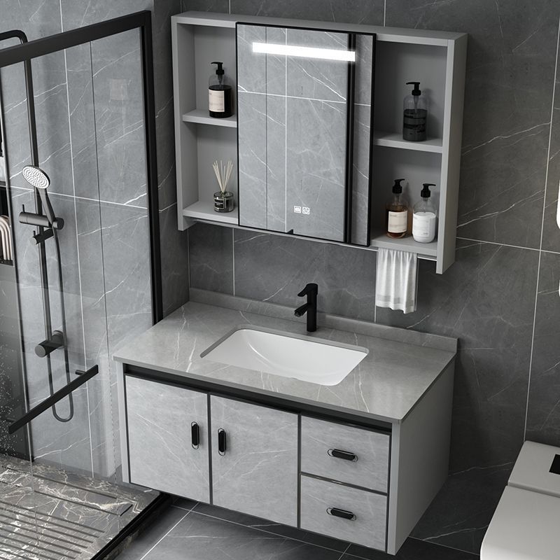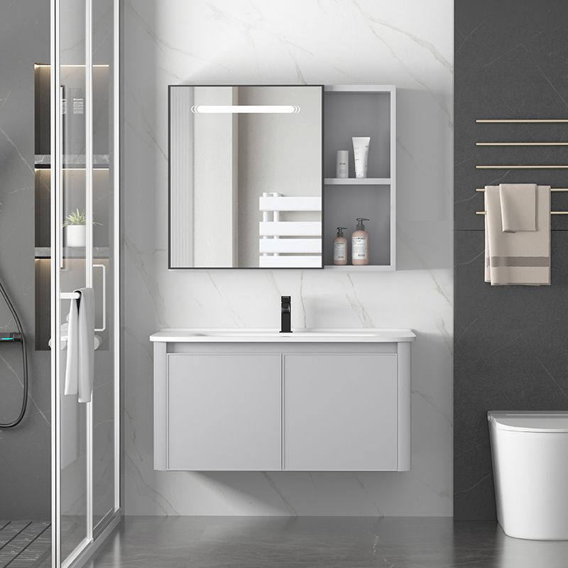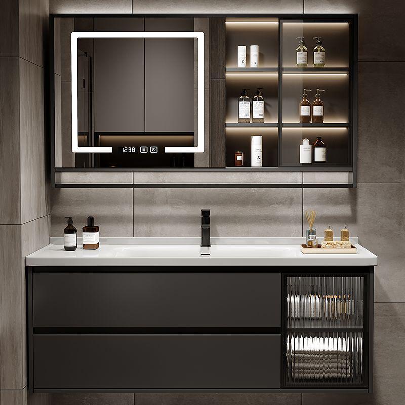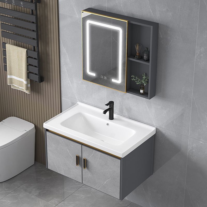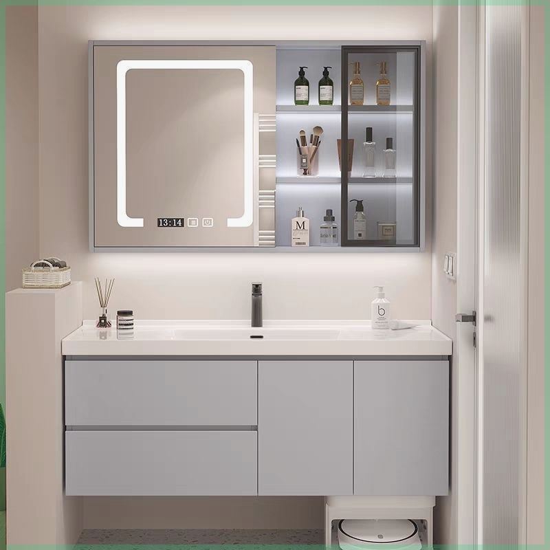 ドアに設置された宇宙アルミ浴室キャビネットセラミックボウルを取り外して、トイレのスマートなセルラーアルミニウム合金浴室キャビネットに交換します