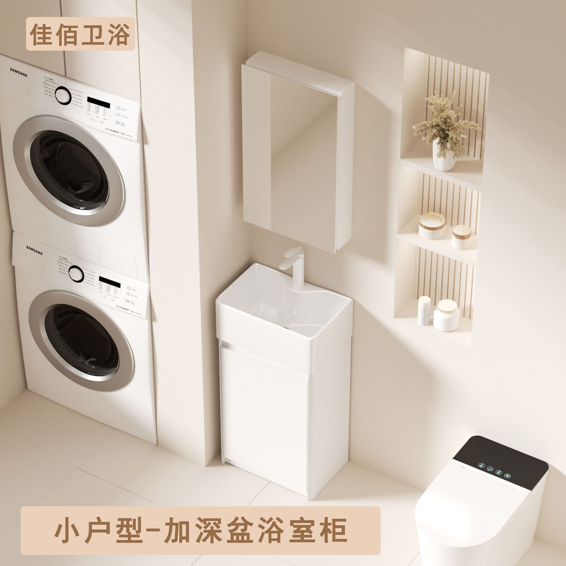 二機位洗濯一体洗濯機一体キャビネットセットスマートトイレ浴室キャビネット岩板洗面台加工