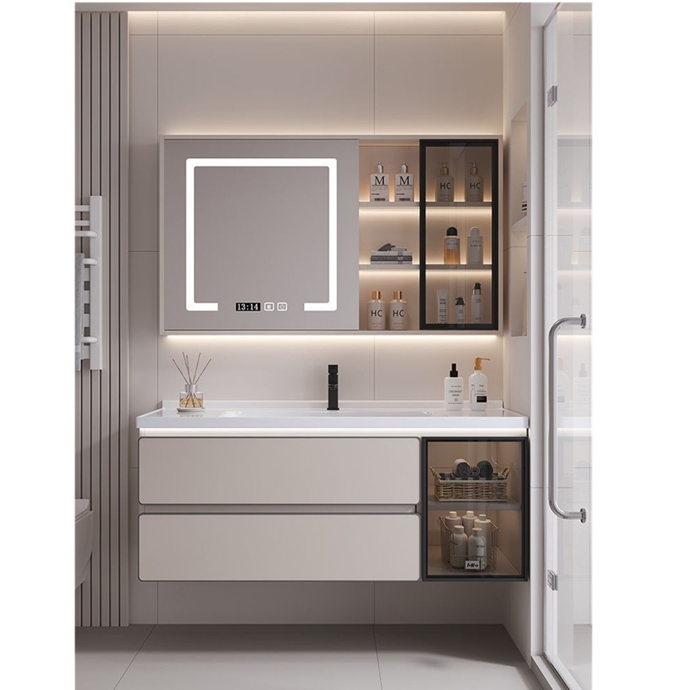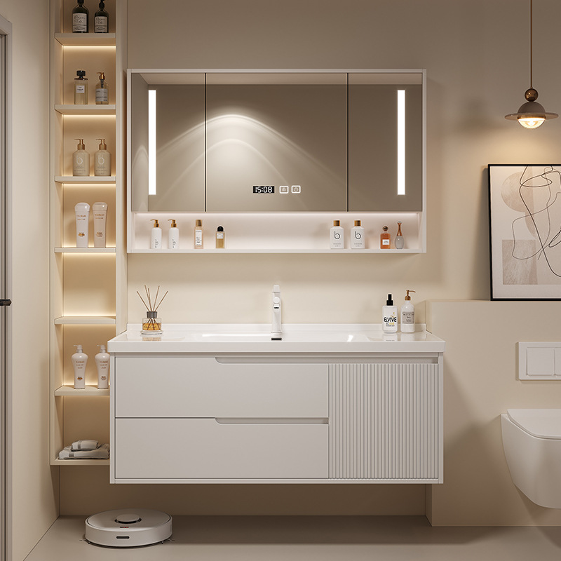 モダンなスペースシンプルなバスルームキャビネットセラミックロックボード一体型バスルーム洗面台組み合わせ洗面台卸売