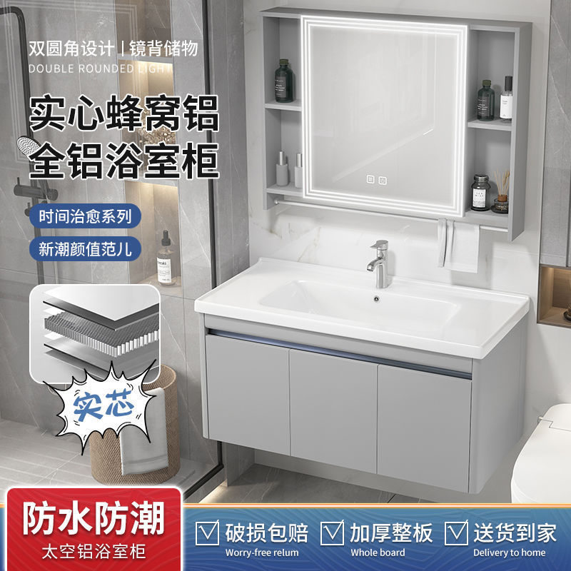 新しいスペースアルミハニカムオールアルミニウムバスルームキャビネット洗面台キャビネット組み合わせバスルーム洗面台一体型セラミック