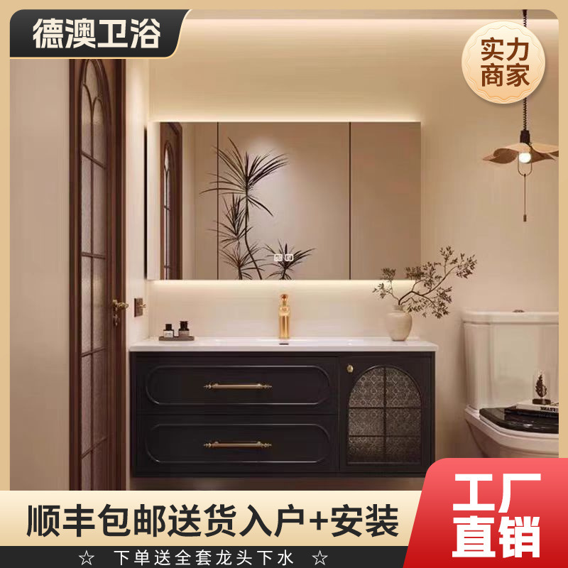 フランス式レトロ浴室キャビネットセットセラミック一体洗面台洗面台トイレ洗面台小戸型洗面キャビネット