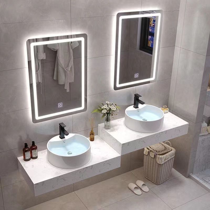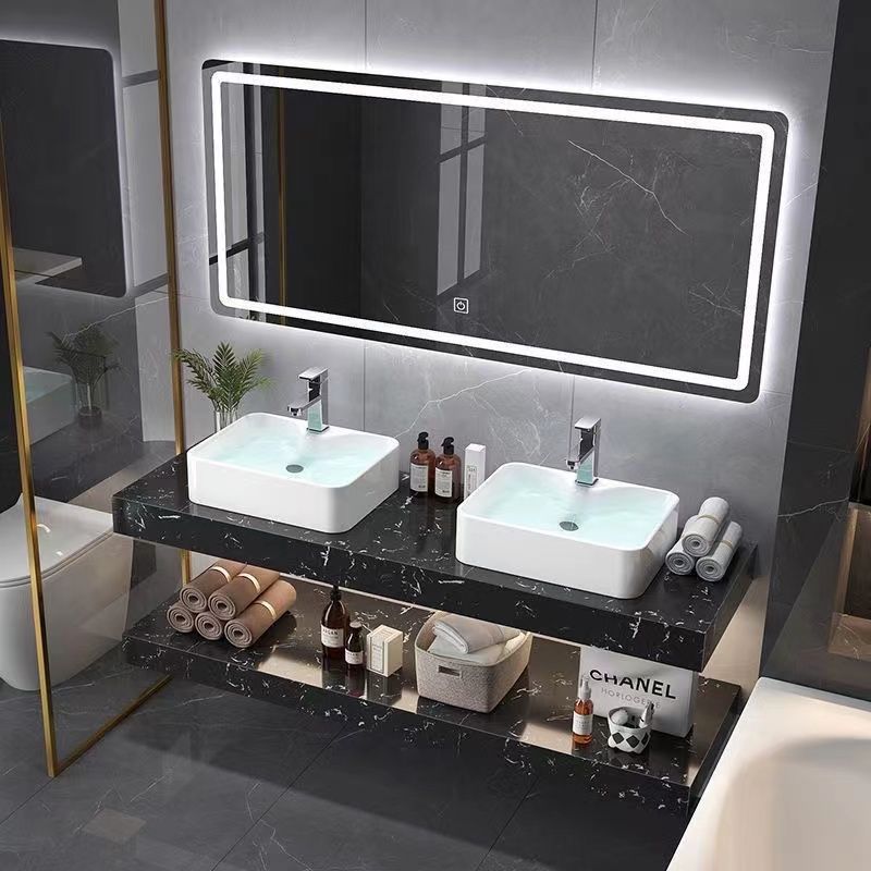 シンプルなバスルームキャビネット大理石の組み合わせ高低ダブル洗面台公共洗面台バスルームダブル洗面台