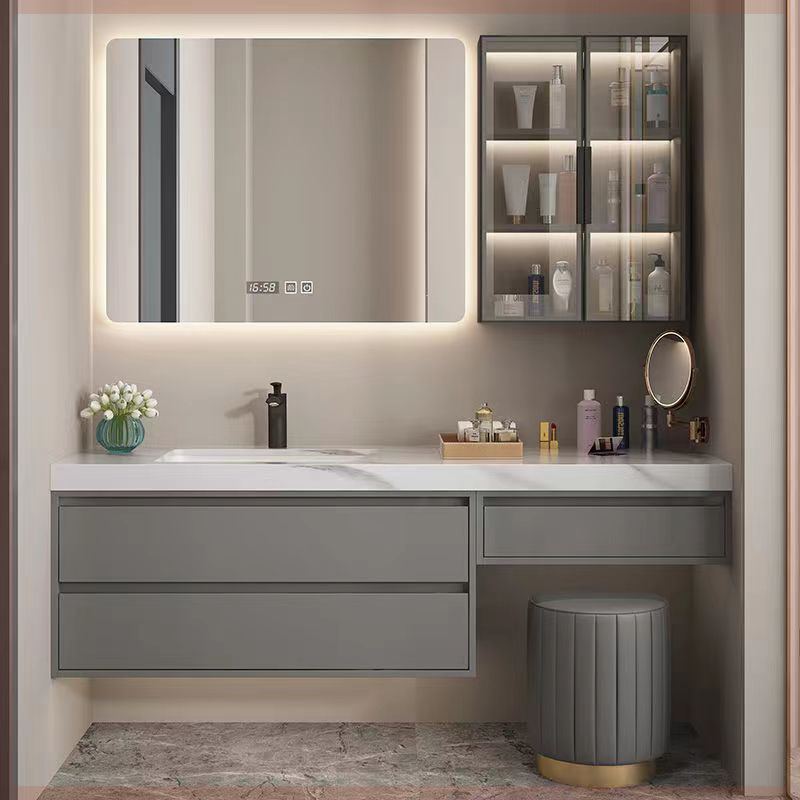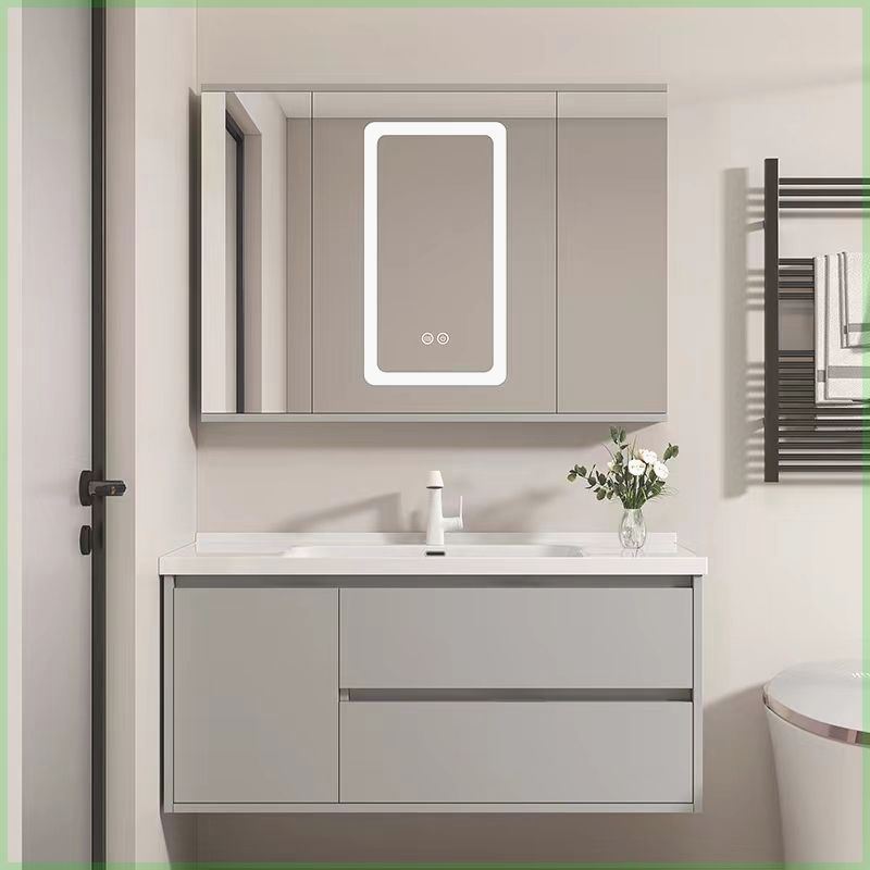 ジェネキ ティールグレー シンプル スマート シームレス 洗面台 セラミック一体型洗面ボウル 壁掛け式浴室キャビネットセット