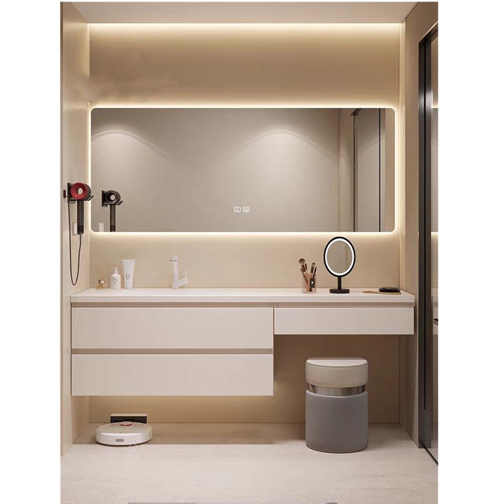ホット曲げ浴室キャビネットクリーム風ホット曲げ一体式洗面器浴室キャビネットセットモダンスマートシンプル洗面洗面洗面台洗面器