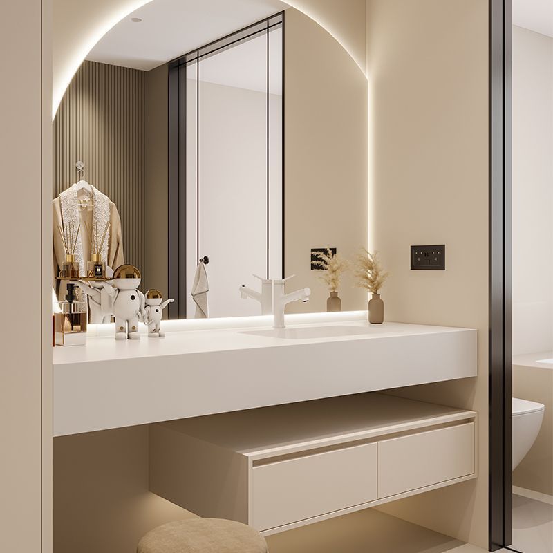 バスルームキャビネット クリームバスルーム バスルームロックボード一体型シームレスセラミック洗面台洗面台組み合わせシングルキャビネット