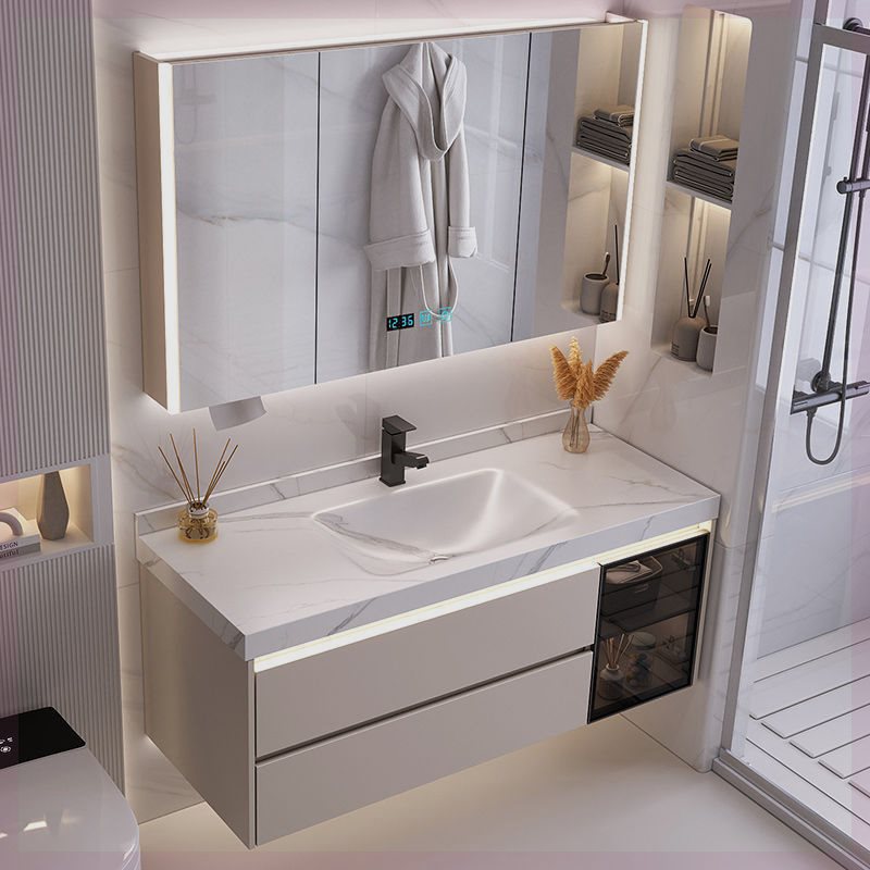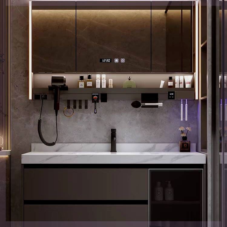 Yingci スペースアルミニウムシンプルなバスルームキャビネット組み合わせセラミックロックボード一体型洗面台バスルーム手洗い洗面台