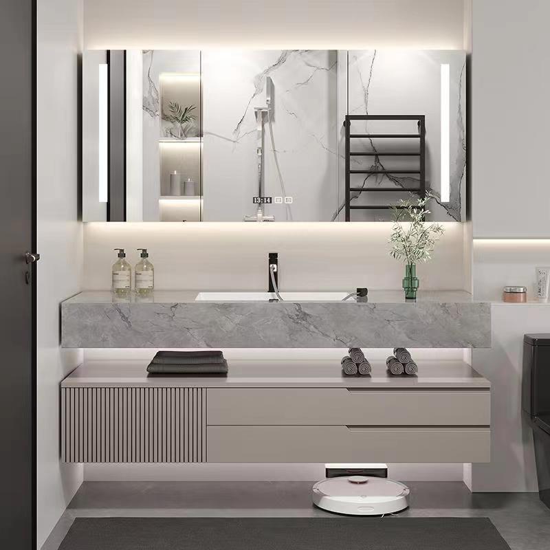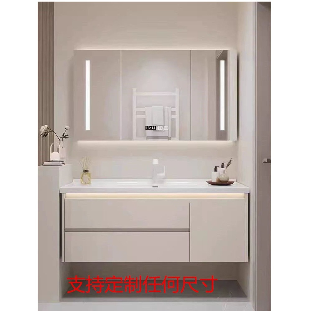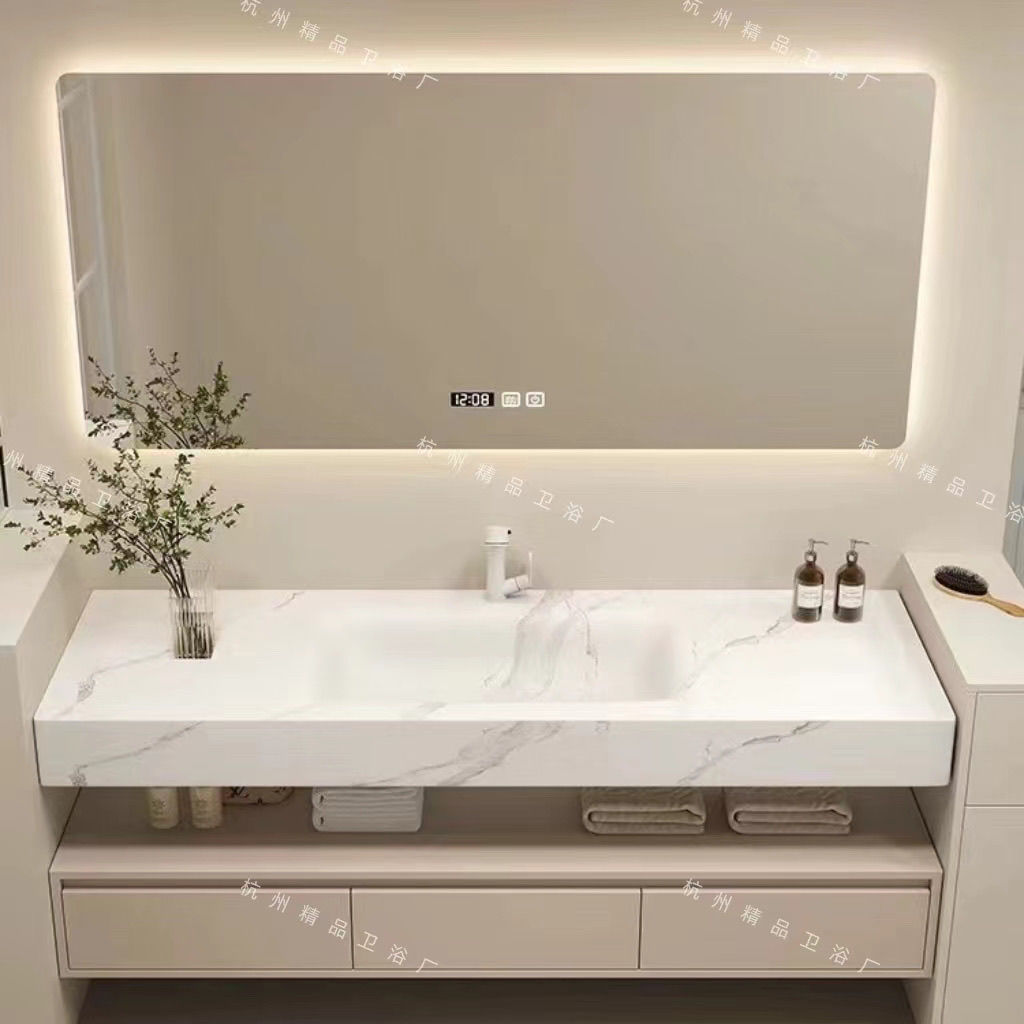 加工クリーム風岩板浴室キャビネットセットモダンシンプル新作シームレスセラミック洗面器洗面台洗面器キャビネット