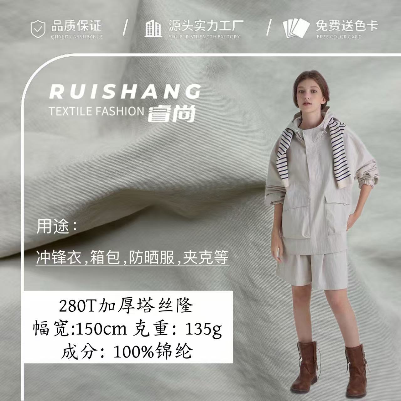 228Tタスラン生地、在庫206色、防水ジャケット、コットンジャケット、ナイロンタスラン生地