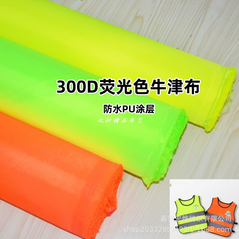 300D蛍光色オックスフォード布puコーティング防水生地ライフジャケット安全ヘルメット安全ベスト生地現物
