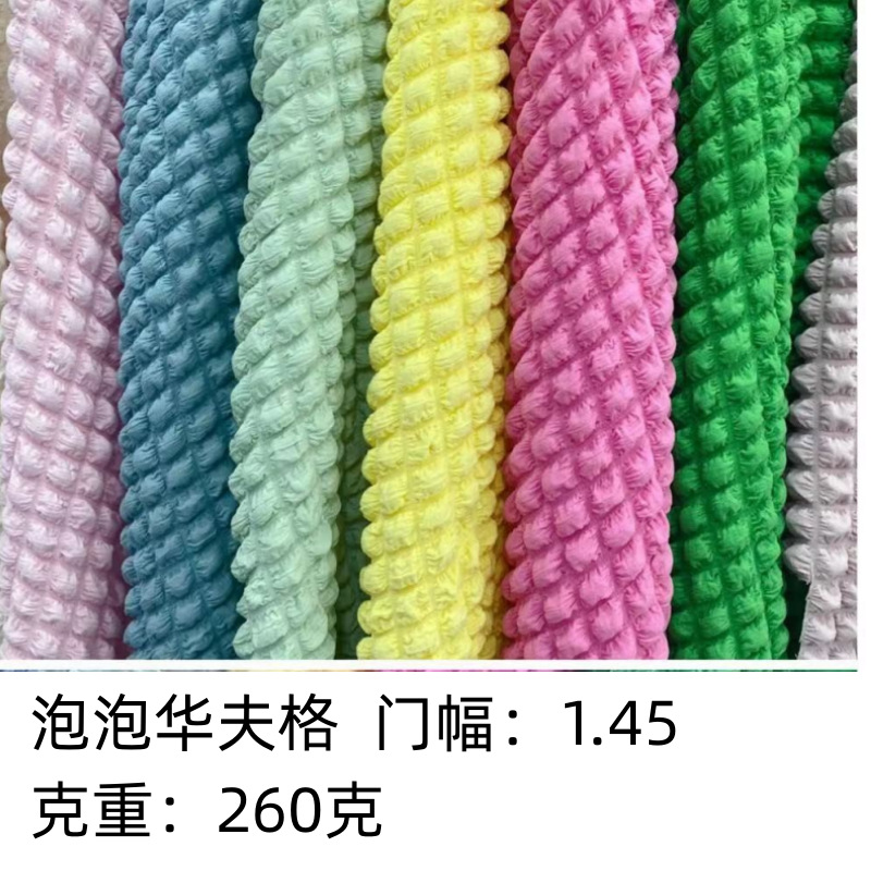 立体のワッフルはしわの方眼布のファッションの泡の格のワンピースを押さえて花の砂を包んで生地の現物を発表します。