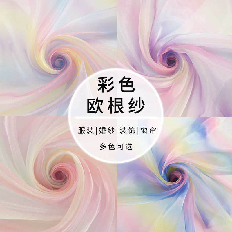 グラデーション色の欧根紗シリーズの服装の舞台は虹の3本の紗の多色を飾ります。