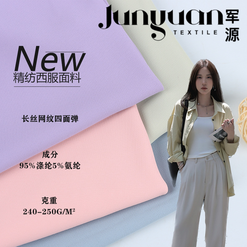 290g イギリス製斜め四方向ストレッチスーツ生地、ドレープ性のあるポリエステルツイル生地、ファッションパンツ・スカート用ストレッチ生地
