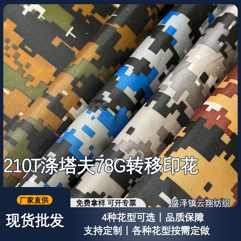 210Tポリエステルタフタ78Gモザイク迷彩布移転プリント防風被収納袋生地軽薄通気