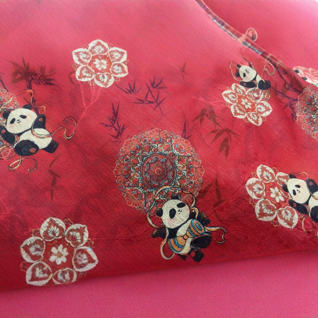 2024秋冬スエードパンダ吉祥綿衣綿入れ国風唐装童装女装手作りdiy生地