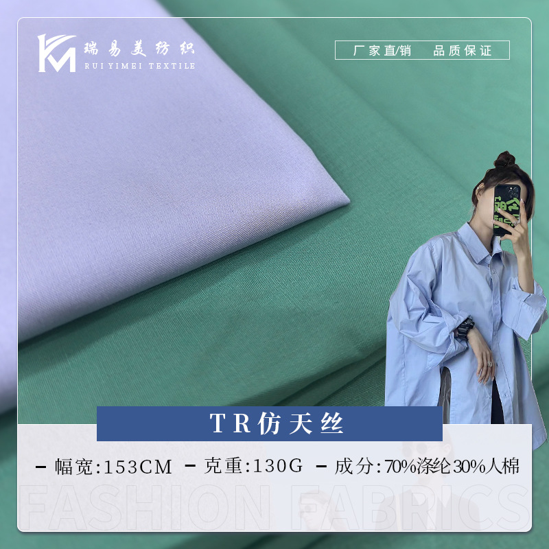 130gTR模造生地女装ワンピース布帛ポリエステル綿生地弾力抗シワ無熱シャツ生地