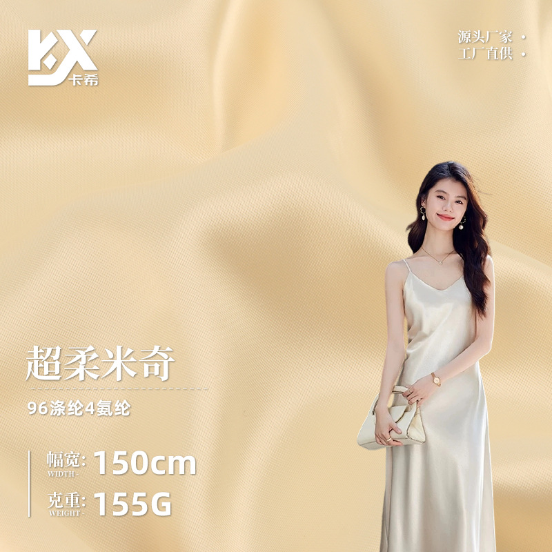 カダンロング生地布地源工場直送、柔らかく肌に優しくしわになりにくい、多色展開240gポリエステル生地