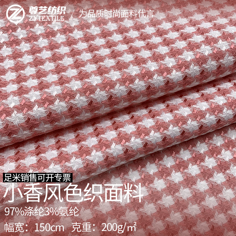 小香風色織千鳥格子生地風車浮き彫り模様弾力布メーカー直販ファッションスーツ生地