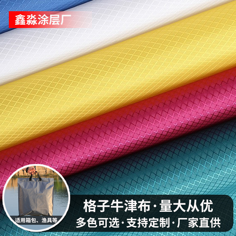 メーカー卸売チェック柄オックスフォード生地、ポリエステル100%、単糸菱形格子、優れた接着剤、防水コーティング、荷物やハンドバッグ用生地