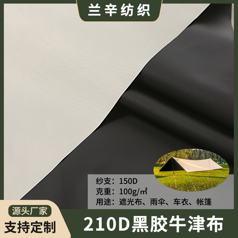 210Dオックスフォード生地、防水コーティング、黒色のテント用天幕、防塵カバー生地、遮光カーテン、完全遮光