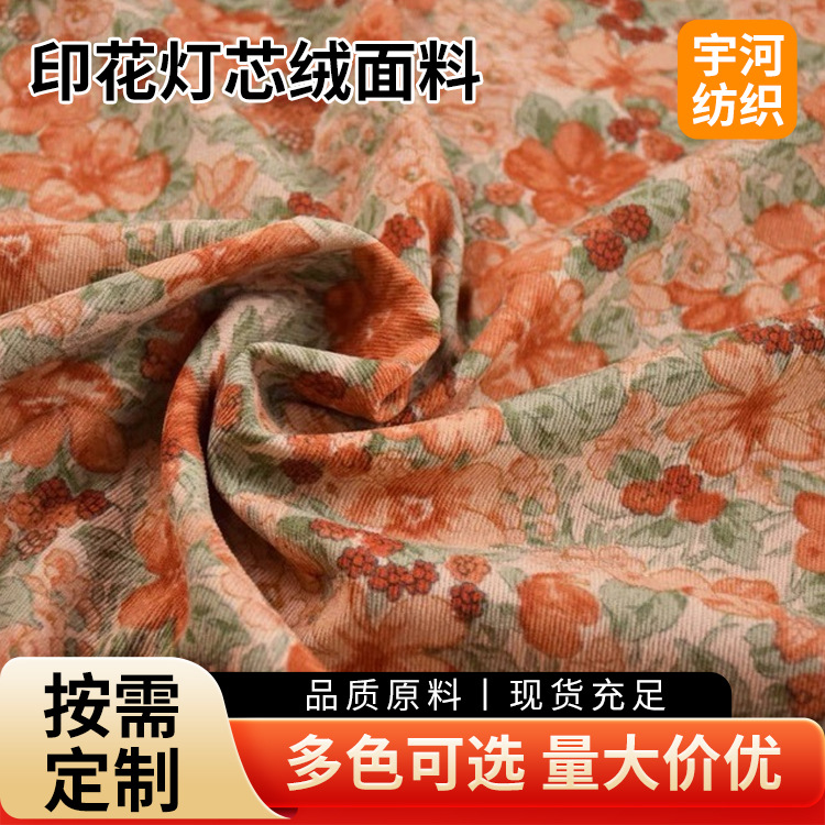 レトロな油絵風オレンジ色の大きな花プリントコーデュロイ生地秋冬ワンピースチャイナドレス手作り綿毛生地