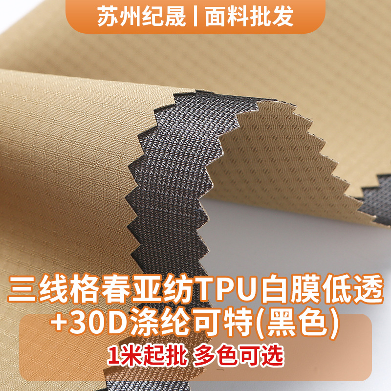 春綿生地卸売 3 線グリッド TPU 白フィルム低透過率 30D ポリエステル Kote ポリエステル生地ダウンジャケット生地