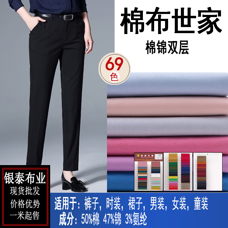 銀泰布業は綿錦の二重の弾力性を厚くして、秋冬のカジュアルなズボンの生地のメーカーの現物はしわに抵抗する生地を供給します。
