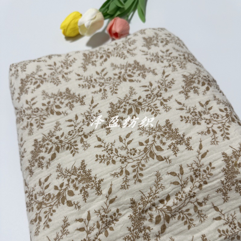 純綿二重ガーゼちりめん赤ちゃんレトロ小さな花柄プリントガーゼ赤ちゃん子供服パジャマホームウェア生地