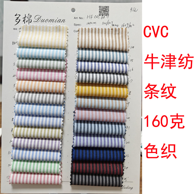 CVC ストライプオックスフォード紡績先染め色紡績ベトナム東南アジア 160 グラム白背景カラーストライプシャツ作業服生地