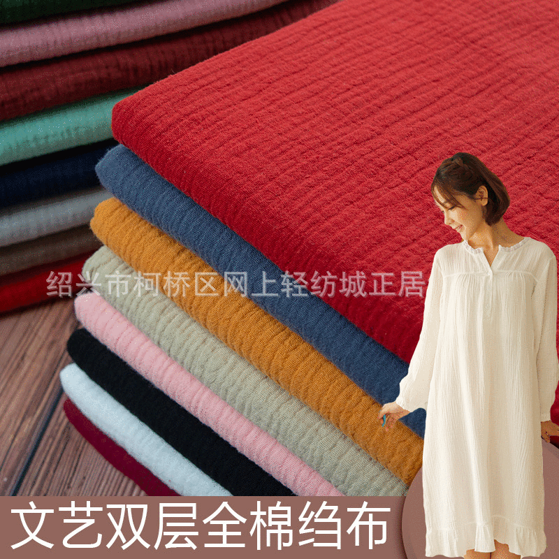 二層クレープ生地無地二層綿糸筋理しわ綿麻純色パジャマ寝スカートバスタオル生地現物