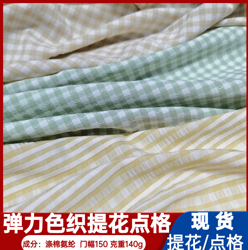 ポリエステル綿色織ジャカード弾力格子生地新作春夏女装子供服ファッションワンピースシャツ服