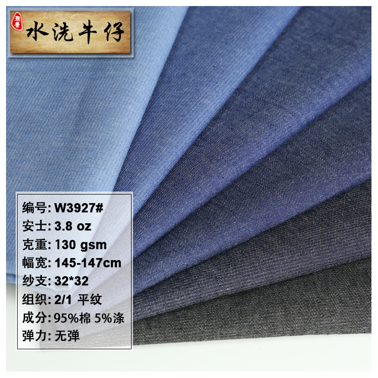 32*32平織り綿3oz水洗いデニム生地三枚水洗いデニム生地薄いデニム生地w3927