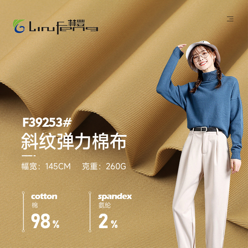 260g綾弾力綿布は天糸生地の秋のカジュアルな厚手コートの布帛生地に似せている