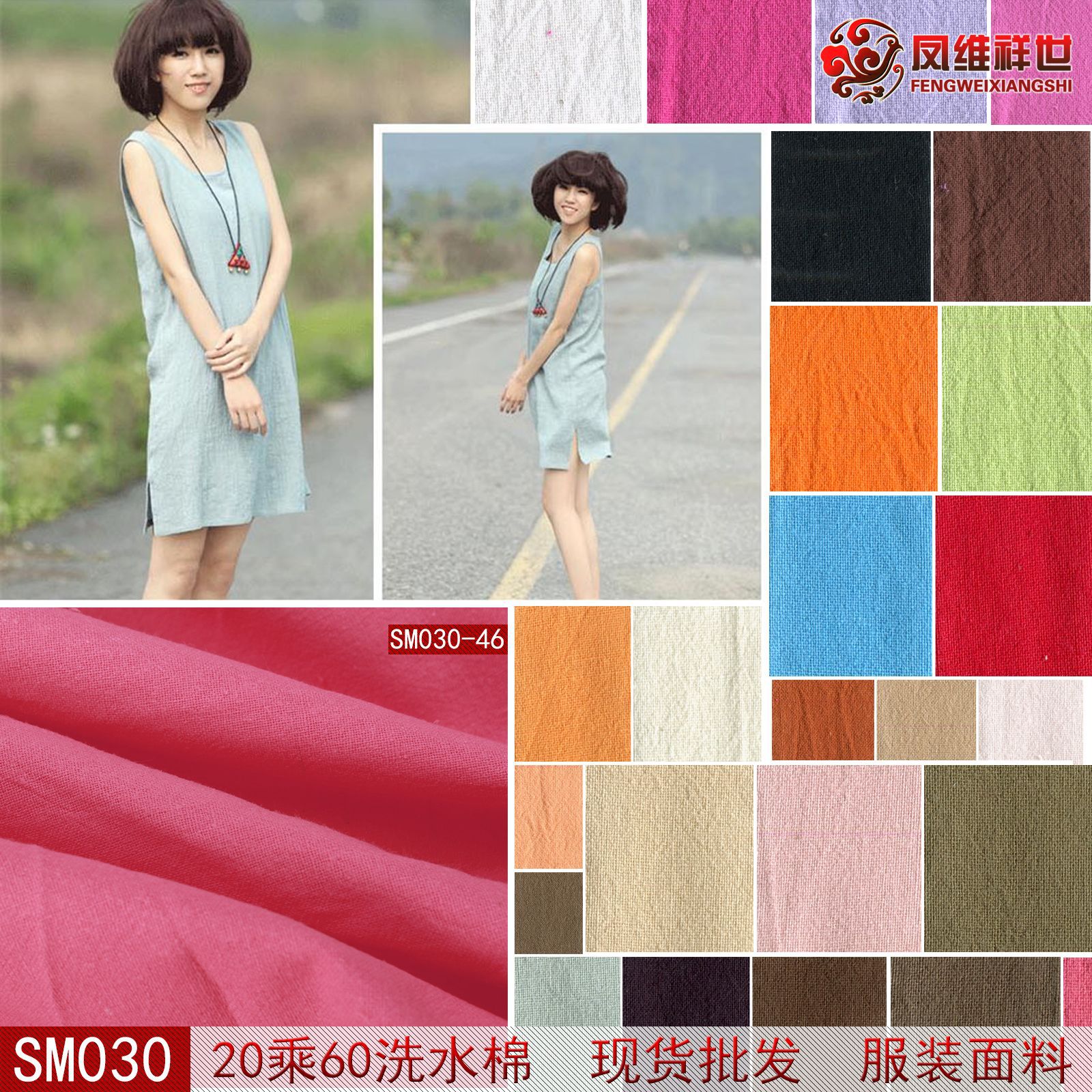 現物小ロット布帛染色生地全綿洗水布20*60洗水綿模造麻服装生地