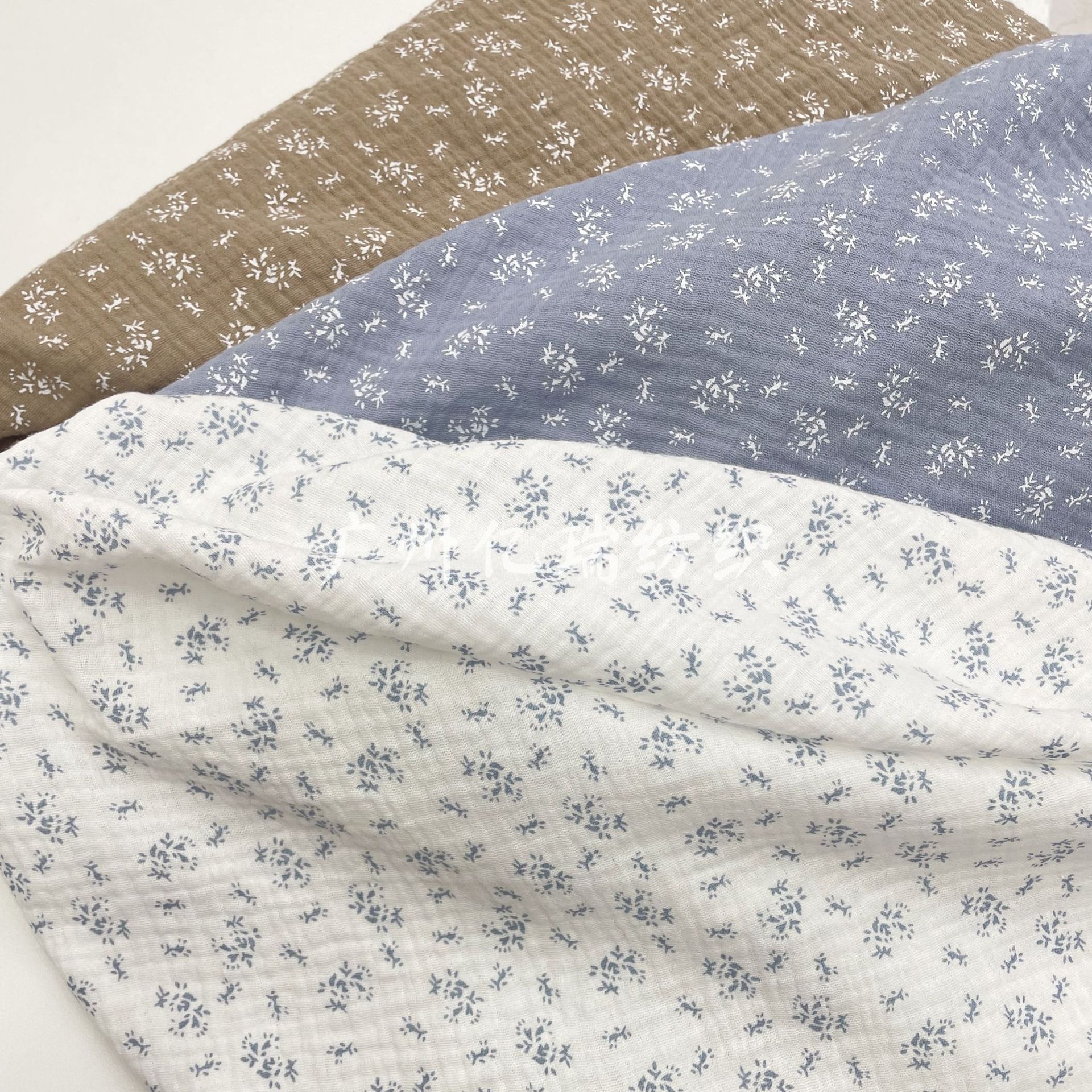 二層筋理綿ガーゼ赤ちゃん鄒しわガーゼ小砕花プリントスポット月子家庭服パジャマ生地
