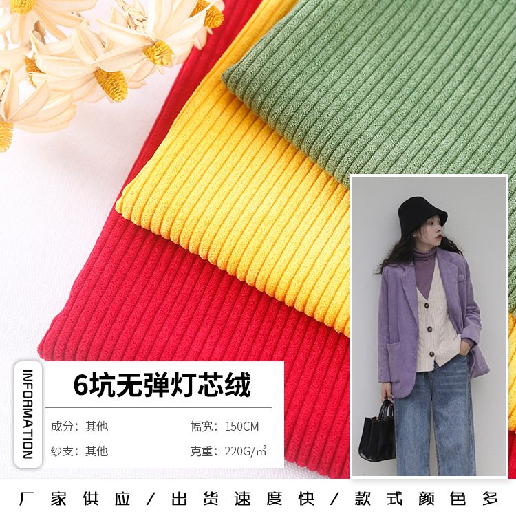 メーカー直供6坑無弾コーデュロイ錦ポリエステル粗坑条パイル広足カジュアルパンツ生地現物
