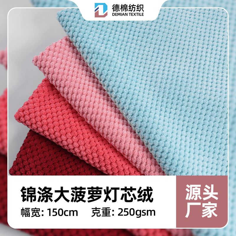 工場直送250g錦織ポリエステル生地、小饅頭大菠萝灯芯绒生地、ファッション枕、靴、帽子、ソファクッション生地