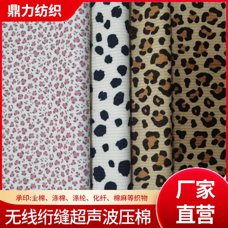 弾性のない綿ポリエステル混紡コーデュロイ防水プリント生地、バッグ、枕加工、ヒョウ柄プリント生地、装飾生地