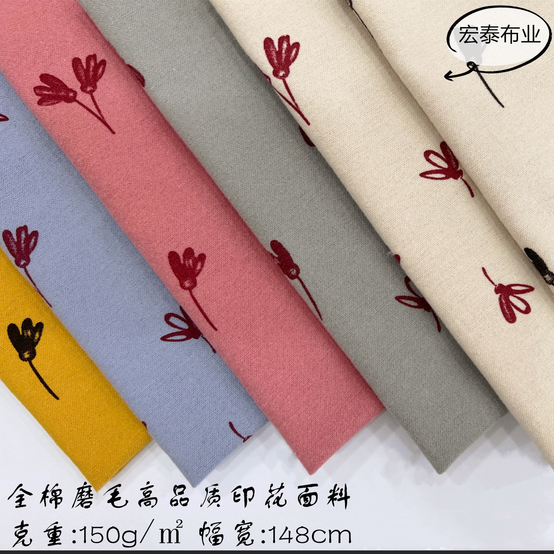 新綿100% 秋冬磨毛日韓ファッションプリント生地子供服小砕花素雅花プリント生地