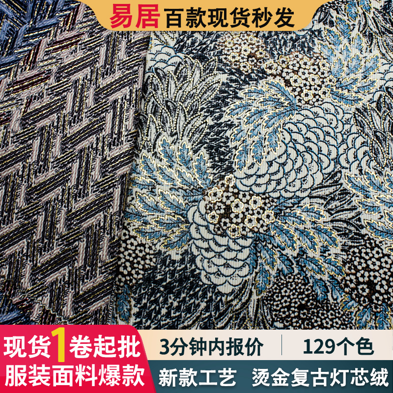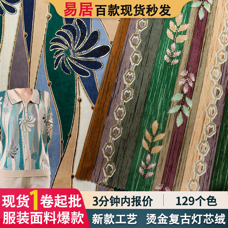 16条高弾箔押しコーデュロイ生地植物花エンボス条ベルベット高齢者服コーデュロイ生地