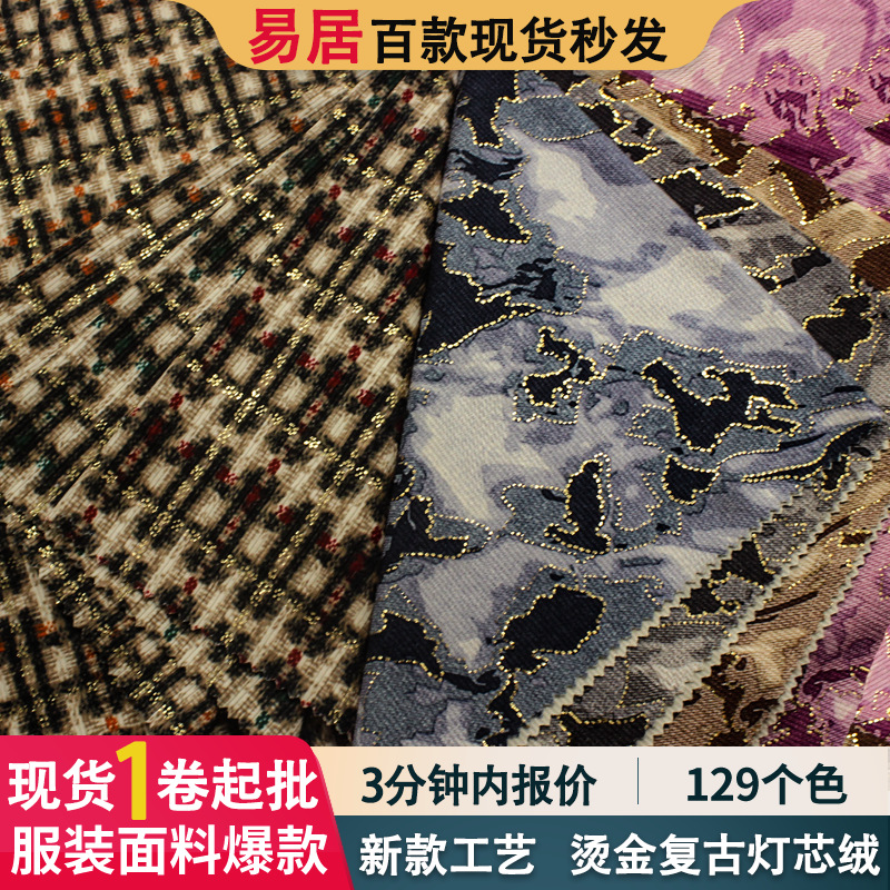 爆金コーデュロイ生地デニムプリント布秋冬童装コート生地模造綿8坑条コーデュロイ布