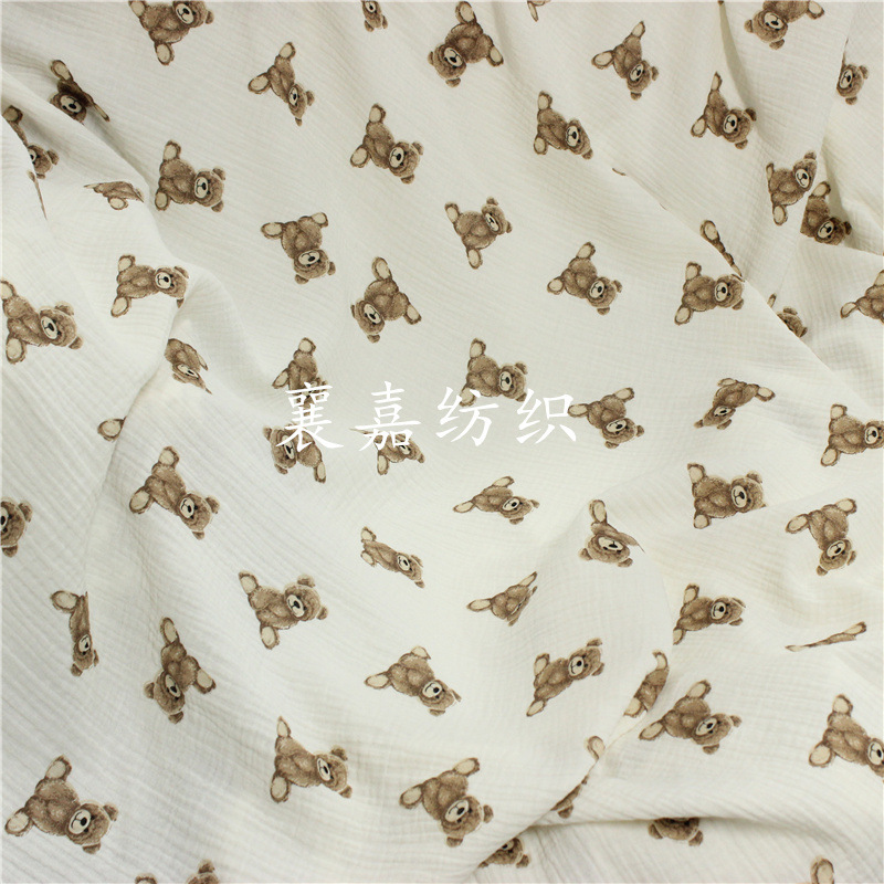 人気のベビーベア柄、二重ガーゼ、しわ加工、幼児服生地