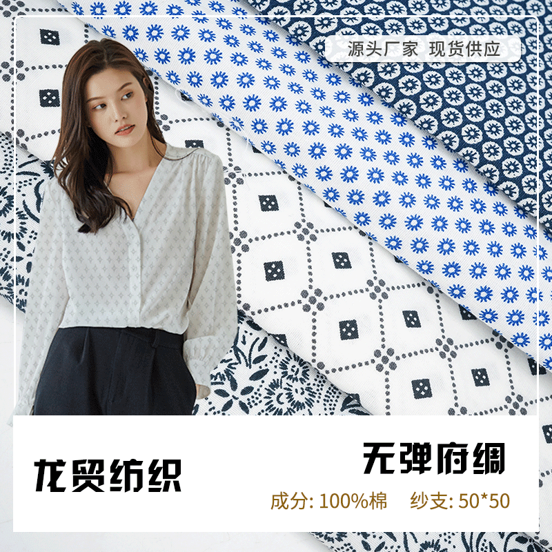 メーカー卸売り全工芸綿ポプリン小砕花活性プリント布童装ストラップシャツ女装布帛生地